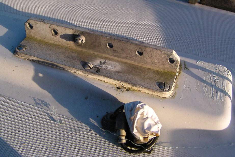 In addition, the mast foot lacked the fore and aft stiffening steel bars which normally spread the downward thrust of the mast over the twin bulkheads below on a Trident ( left). As a result the grp beneath the mast foot showed signs of crushing. A pair of 50mm stainless steel angle bars were added under the alloy mast foot (right – click to enlarge).
