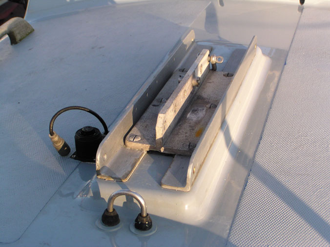 The Proctor mast was stepped on an inverted T-shaped foot plate with a pivoting heel which, combined with the excess weight aloft, made lowering the mast by hand quite precarious compared with a lighter tabernacle-mounted Trident mast.
