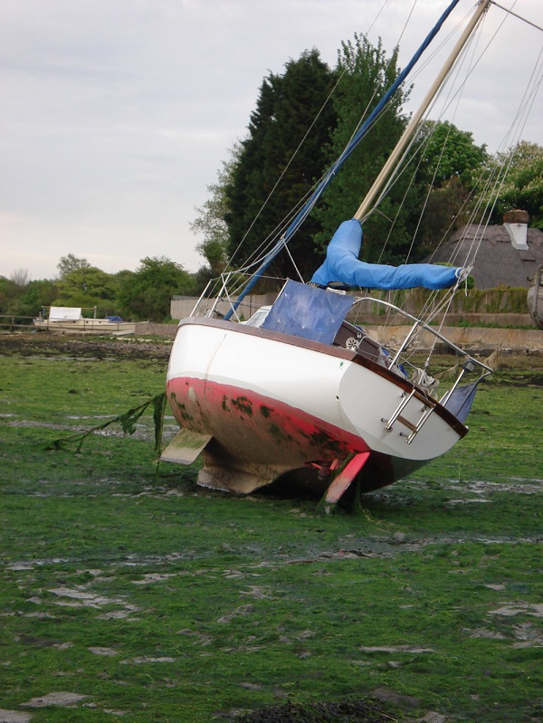 Lottie‘s central cast-iron ballast keel is a disgrace. Every year we promise to give it some cosmetic and anticorrosive treatment but in the event all it gets is a lick and a promise – a quick wire brushing followed by yet another coat of antifouling. The result at the end of each season is not pretty but the corrosion is not seriously depleting the cast iron.