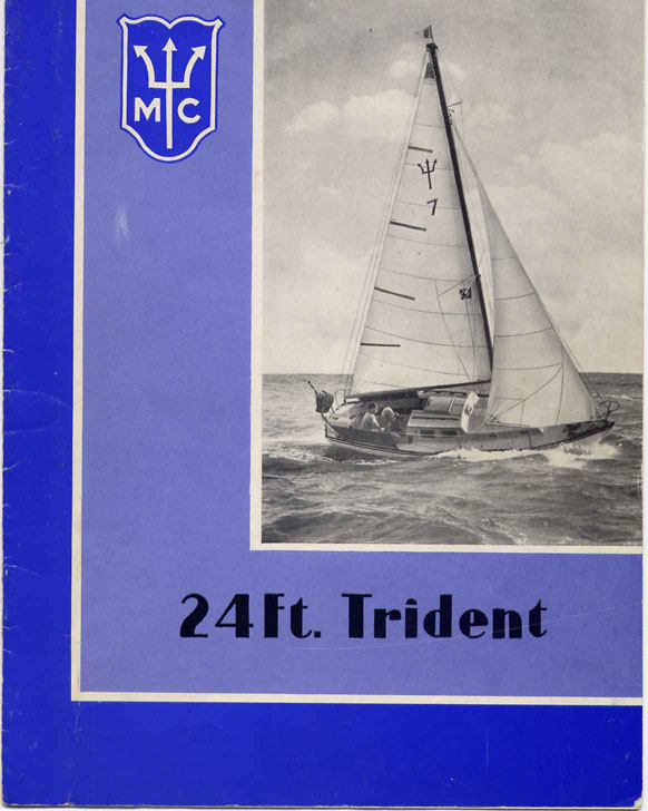 This black and white leaflet is believed to have been produced around 1963. It featured Trident number 1, the wood and grp composite prototype first launched in 1960. The artwork and detailed description all relates to the centreboard version though the fin and bilge options were then being developed and are listed as options on the front cover. The descriptive pages suggest the grp deck moulding had already replaced the wooden superstructure in production boats by this time.
